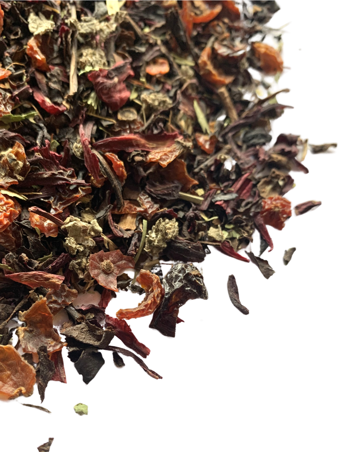 Bright loose leaf fruit oolong tea blend with hibiscus and rosehip. Naturally sweet with stevia leaf. No flavorings or extracts.